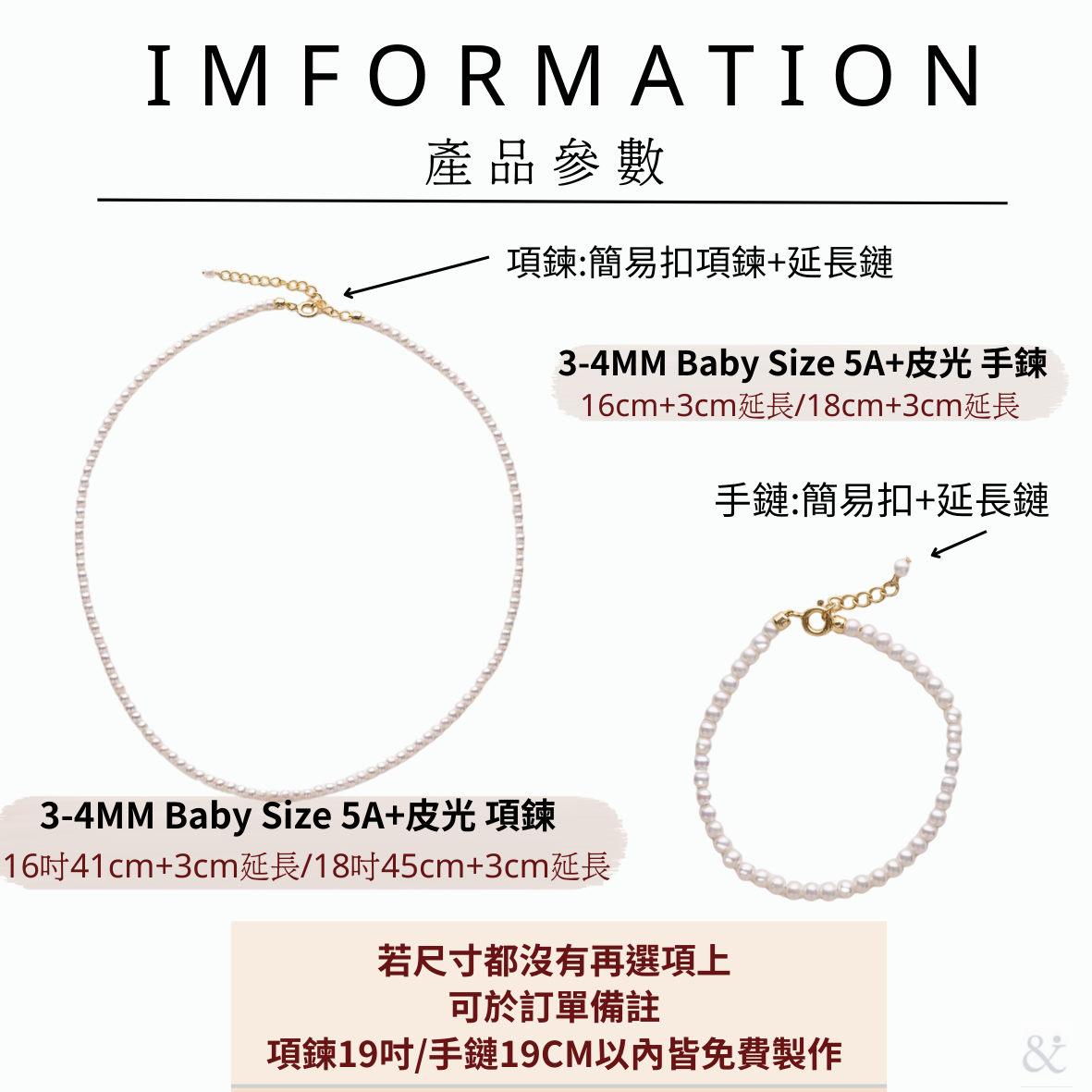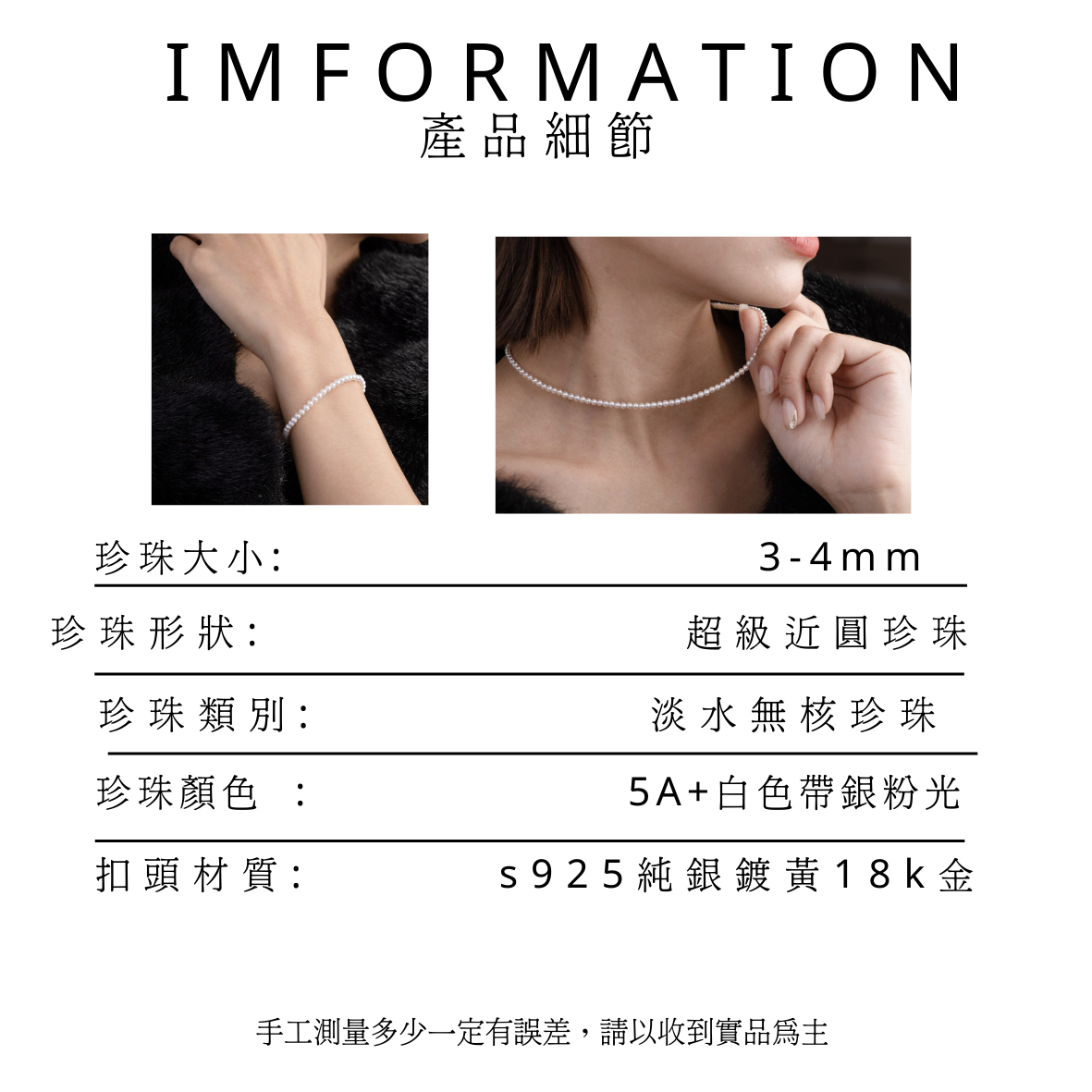 精選3-4.5mm近正圓 size的珍珠,一條項鍊做下來約使用120顆的頂級珍珠。